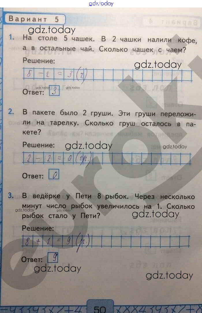 Ответы к Решение к части 1. Страницы 50 Контрольным работам по Математике для 1 класса Рудницкая Экзамен УМК 2014