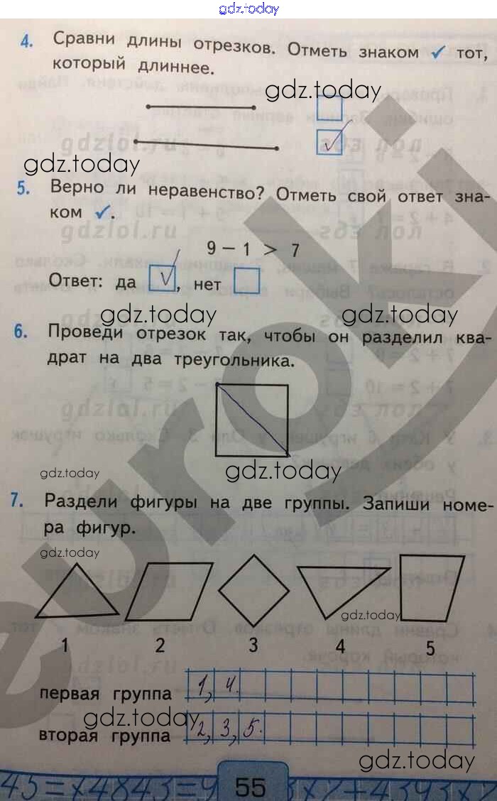 На страницах сайта gdz.today вы найдете учебный и вспомогательный материал, направленный на улучшения знаний школьной программы. ГДЗ - онлайн мир знаний Решение к части 1. Страницы 55 Контрольным работам по Математике для 1 класса Рудницкая Экзамен УМК 2014