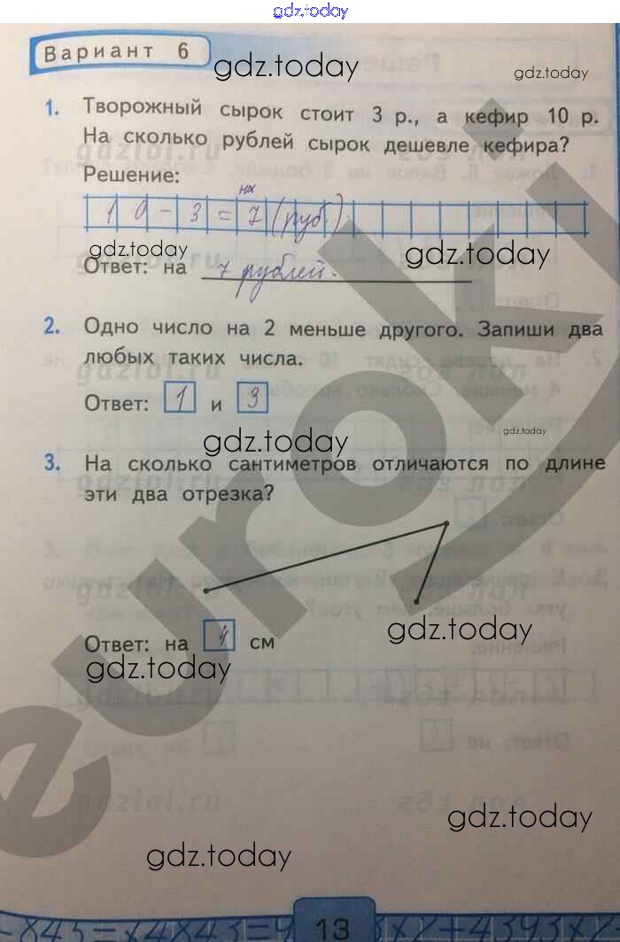 На страницах сайта gdz.today вы найдете учебный и вспомогательный материал, направленный на улучшения знаний школьной программы. ГДЗ - онлайн мир знаний Решение к части 2. Страницы 13 Контрольным работам по Математике для 1 класса Рудницкая Экзамен УМК 2014