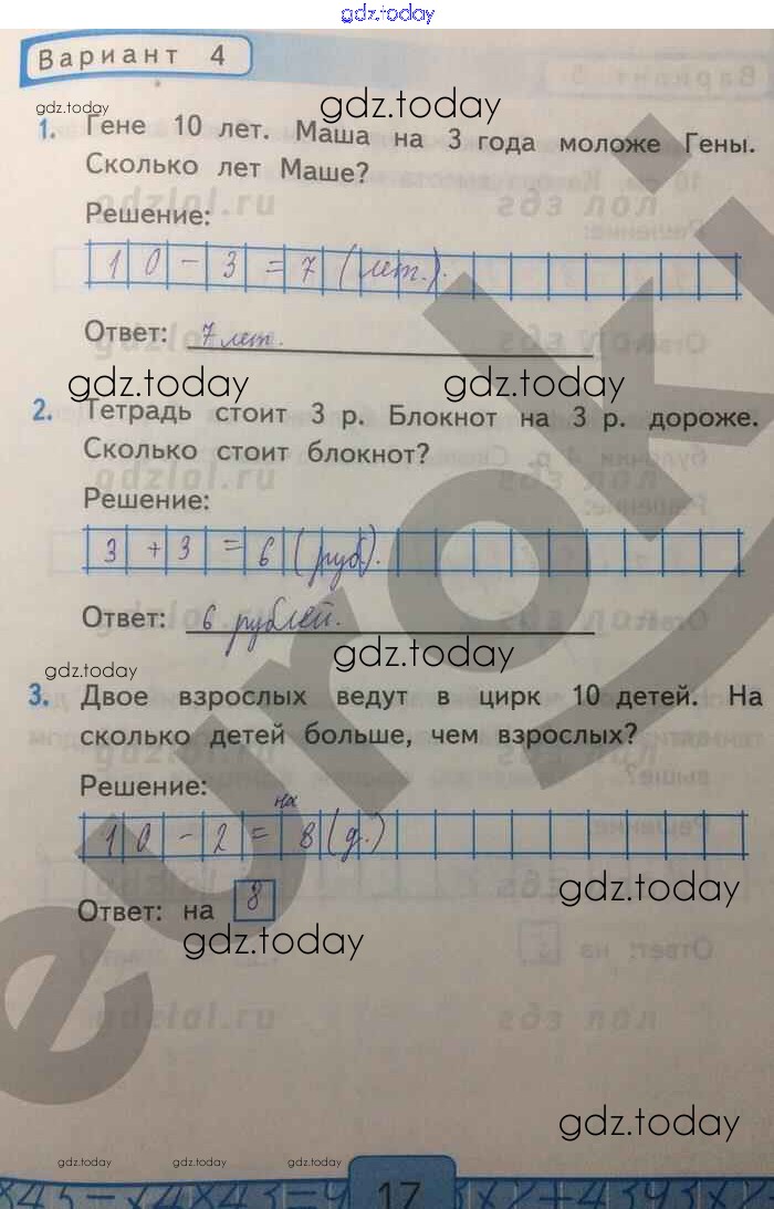 На страницах сайта gdz.today вы найдете учебный и вспомогательный материал, направленный на улучшения знаний школьной программы. ГДЗ - онлайн мир знаний Решение к части 2. Страницы 17 Контрольным работам по Математике для 1 класса Рудницкая Экзамен УМК 2014