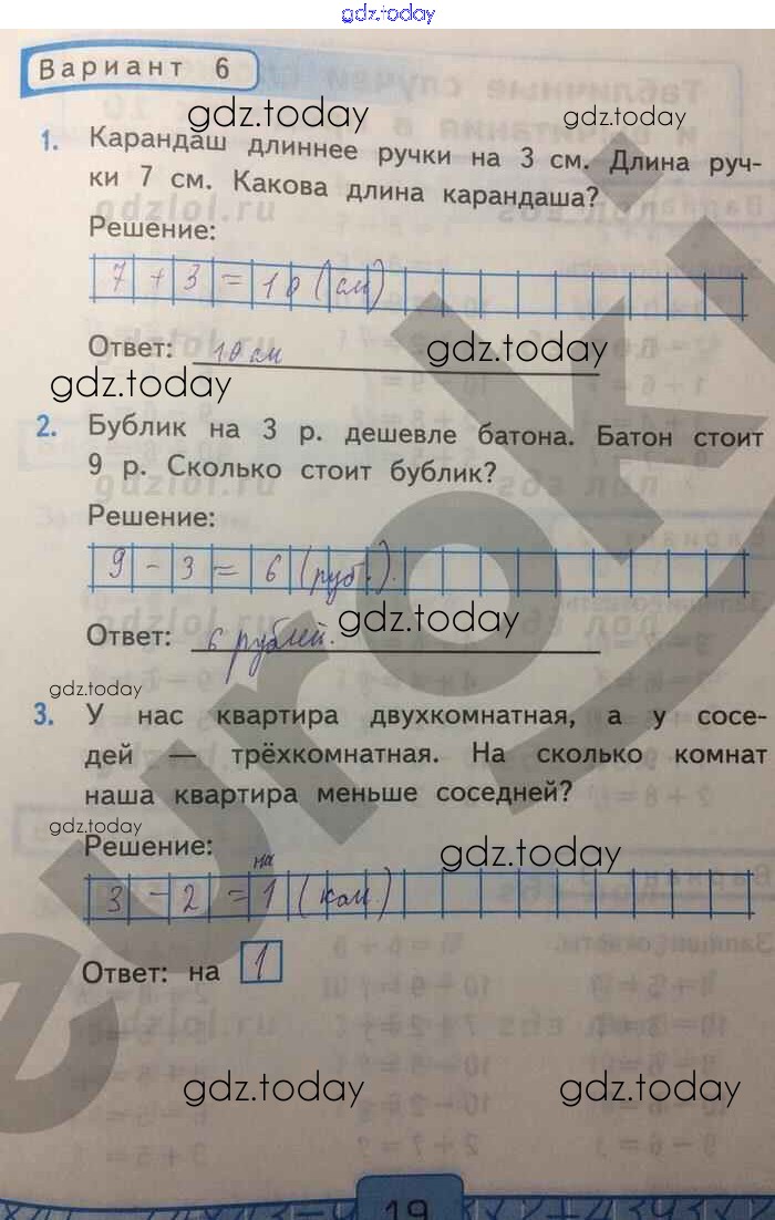 На страницах сайта gdz.today вы найдете учебный и вспомогательный материал, направленный на улучшения знаний школьной программы. ГДЗ - онлайн мир знаний Решение к части 2. Страницы 19 Контрольным работам по Математике для 1 класса Рудницкая Экзамен УМК 2014