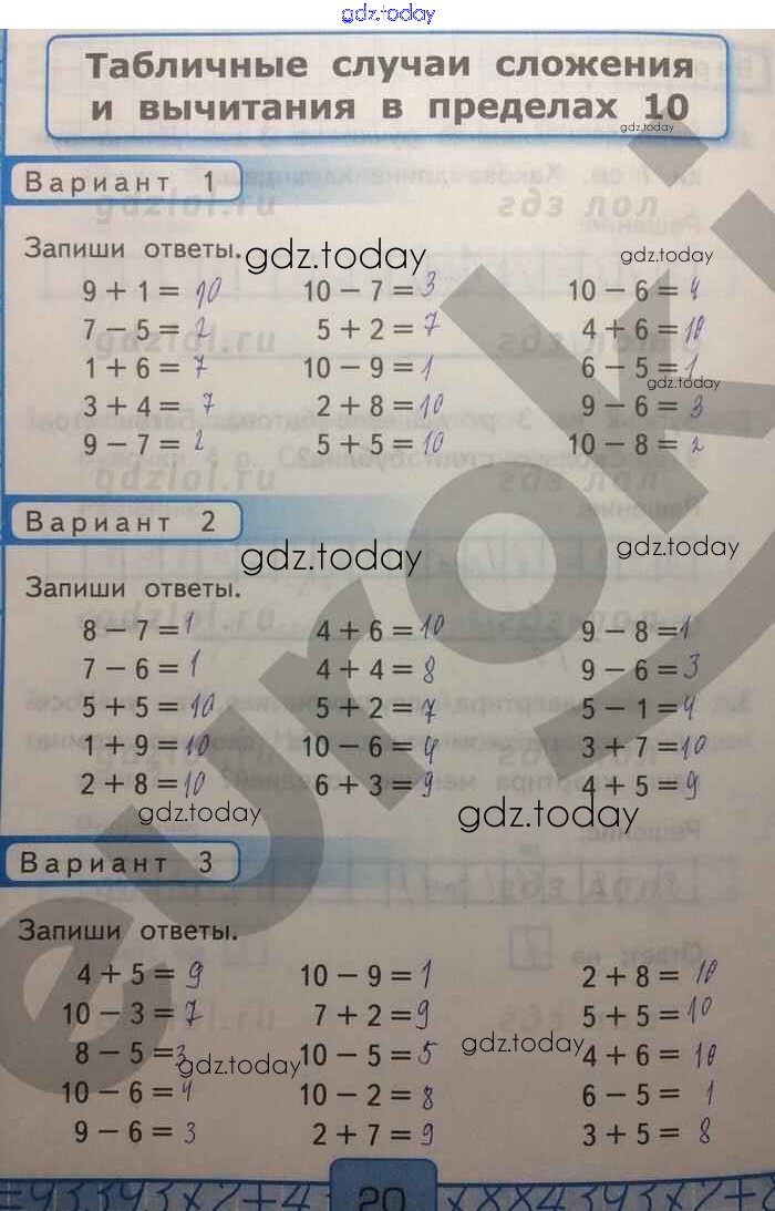 На страницах сайта gdz.today вы найдете учебный и вспомогательный материал, направленный на улучшения знаний школьной программы. ГДЗ - онлайн мир знаний Решение к части 2. Страницы 20 Контрольным работам по Математике для 1 класса Рудницкая Экзамен УМК 2014
