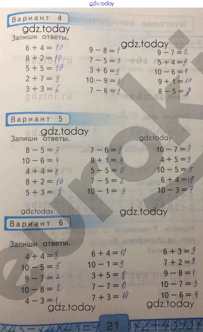 На страницах сайта gdz.today вы найдете учебный и вспомогательный материал, направленный на улучшения знаний школьной программы. ГДЗ - онлайн мир знаний Решение к части 2. Страницы 21 Контрольным работам по Математике для 1 класса Рудницкая Экзамен УМК 2014