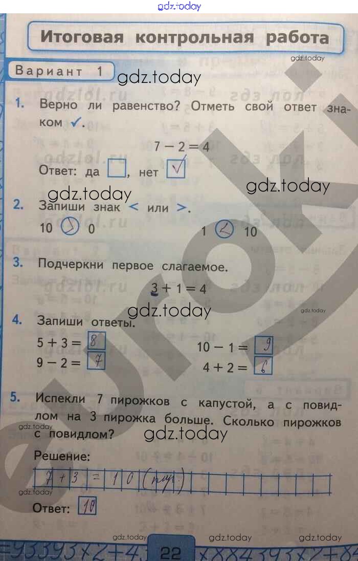 На страницах сайта gdz.today вы найдете учебный и вспомогательный материал, направленный на улучшения знаний школьной программы. ГДЗ - онлайн мир знаний Решение к части 2. Страницы 22 Контрольным работам по Математике для 1 класса Рудницкая Экзамен УМК 2014
