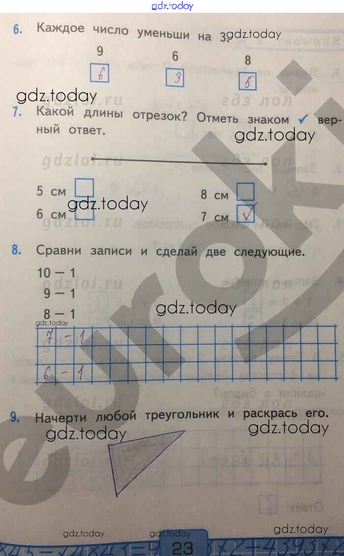 На страницах сайта gdz.today вы найдете учебный и вспомогательный материал, направленный на улучшения знаний школьной программы. ГДЗ - онлайн мир знаний Решение к части 2. Страницы 23 Контрольным работам по Математике для 1 класса Рудницкая Экзамен УМК 2014