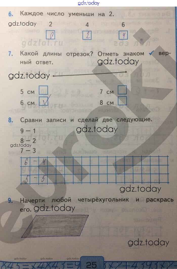 На страницах сайта gdz.today вы найдете учебный и вспомогательный материал, направленный на улучшения знаний школьной программы. ГДЗ - онлайн мир знаний Решение к части 2. Страницы 25 Контрольным работам по Математике для 1 класса Рудницкая Экзамен УМК 2014