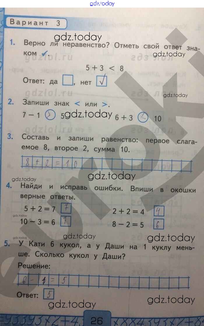 На страницах сайта gdz.today вы найдете учебный и вспомогательный материал, направленный на улучшения знаний школьной программы. ГДЗ - онлайн мир знаний Решение к части 2. Страницы 26 Контрольным работам по Математике для 1 класса Рудницкая Экзамен УМК 2014