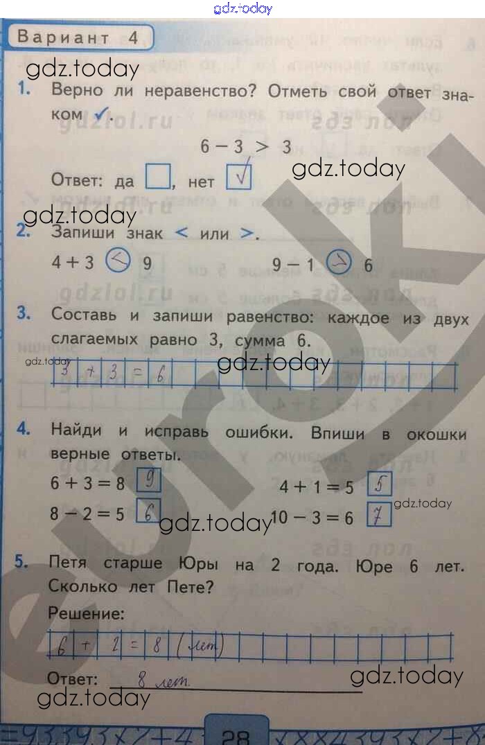 На страницах сайта gdz.today вы найдете учебный и вспомогательный материал, направленный на улучшения знаний школьной программы. ГДЗ - онлайн мир знаний Решение к части 2. Страницы 28 Контрольным работам по Математике для 1 класса Рудницкая Экзамен УМК 2014