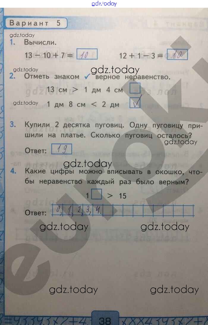 На страницах сайта gdz.today вы найдете учебный и вспомогательный материал, направленный на улучшения знаний школьной программы. ГДЗ - онлайн мир знаний Решение к части 2. Страницы 38 Контрольным работам по Математике для 1 класса Рудницкая Экзамен УМК 2014