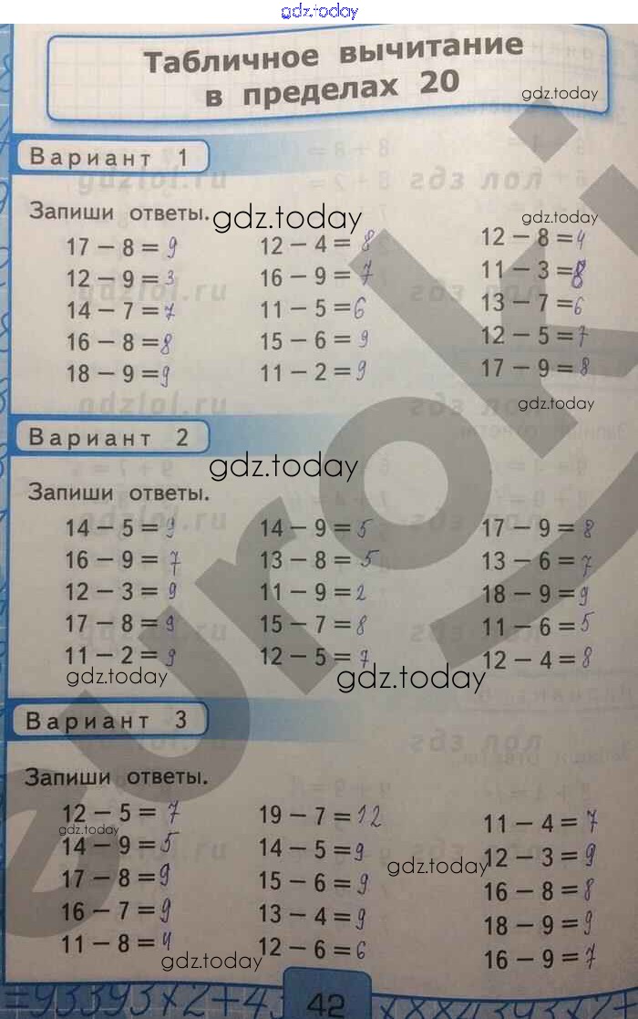 На страницах сайта gdz.today вы найдете учебный и вспомогательный материал, направленный на улучшения знаний школьной программы. ГДЗ - онлайн мир знаний Решение к части 2. Страницы 42 Контрольным работам по Математике для 1 класса Рудницкая Экзамен УМК 2014