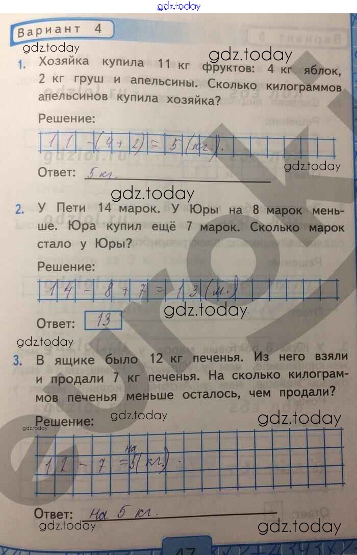 На страницах сайта gdz.today вы найдете учебный и вспомогательный материал, направленный на улучшения знаний школьной программы. ГДЗ - онлайн мир знаний Решение к части 2. Страницы 47 Контрольным работам по Математике для 1 класса Рудницкая Экзамен УМК 2014