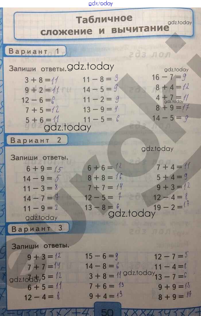На страницах сайта gdz.today вы найдете учебный и вспомогательный материал, направленный на улучшения знаний школьной программы. ГДЗ - онлайн мир знаний Решение к части 2. Страницы 50 Контрольным работам по Математике для 1 класса Рудницкая Экзамен УМК 2014