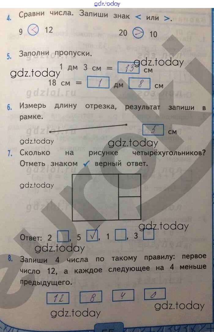 На страницах сайта gdz.today вы найдете учебный и вспомогательный материал, направленный на улучшения знаний школьной программы. ГДЗ - онлайн мир знаний Решение к части 2. Страницы 55 Контрольным работам по Математике для 1 класса Рудницкая Экзамен УМК 2014