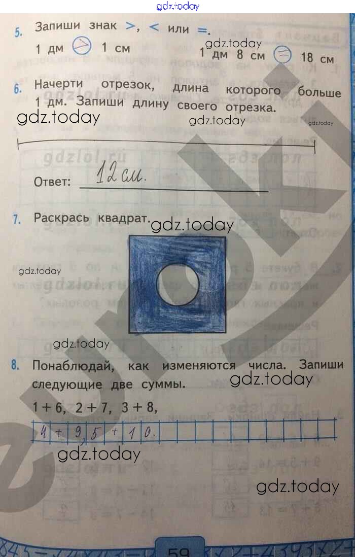 На страницах сайта gdz.today вы найдете учебный и вспомогательный материал, направленный на улучшения знаний школьной программы. ГДЗ - онлайн мир знаний Решение к части 2. Страницы 59 Контрольным работам по Математике для 1 класса Рудницкая Экзамен УМК 2014