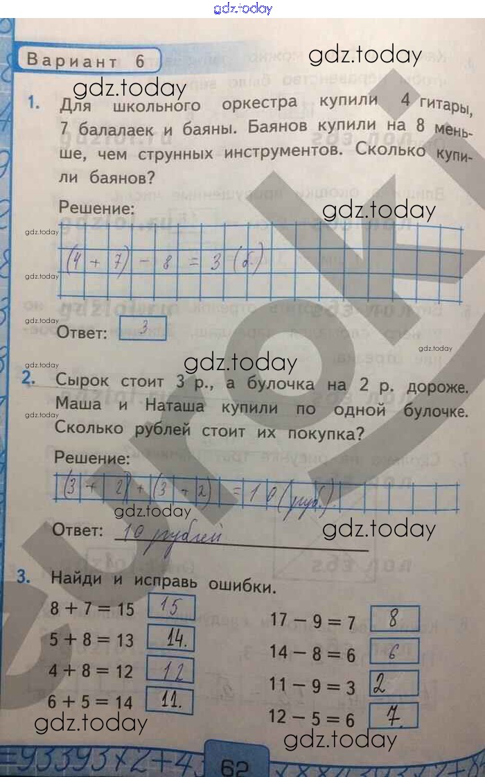 На страницах сайта gdz.today вы найдете учебный и вспомогательный материал, направленный на улучшения знаний школьной программы. ГДЗ - онлайн мир знаний Решение к части 2. Страницы 62 Контрольным работам по Математике для 1 класса Рудницкая Экзамен УМК 2014