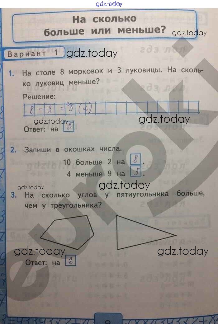 На страницах сайта gdz.today вы найдете учебный и вспомогательный материал, направленный на улучшения знаний школьной программы. ГДЗ - онлайн мир знаний Решение к части 2. Страницы 8 Контрольным работам по Математике для 1 класса Рудницкая Экзамен УМК 2014