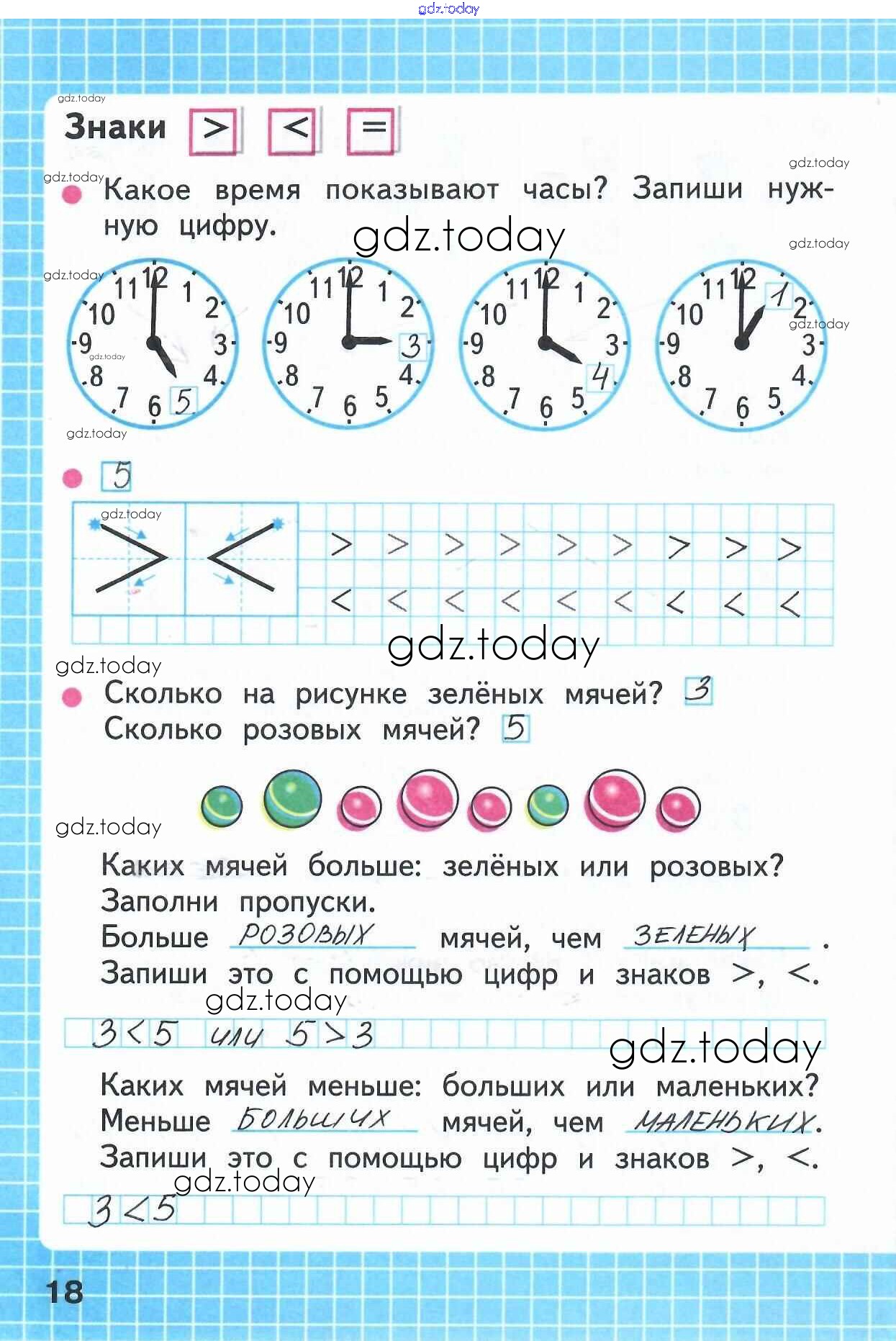 На страницах сайта gdz.today вы найдете учебный и вспомогательный материал, направленный на улучшения знаний школьной программы. ГДЗ - онлайн мир знаний Решение к части 1 (Страницы) 18 Рабочей тетради по Математике для 1 класса Моро, Волкова Просвещение Школа России 2016