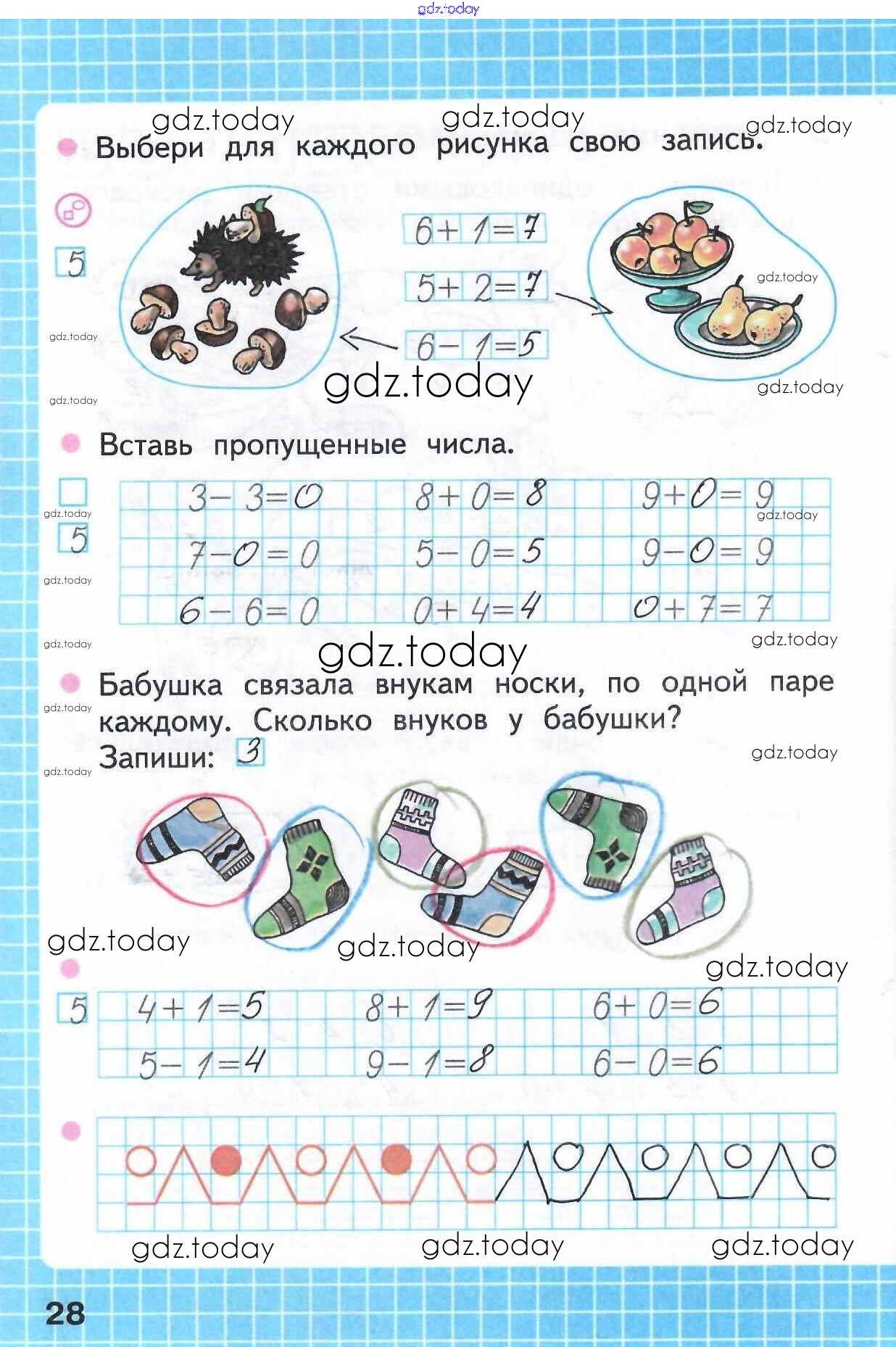 На страницах сайта gdz.today вы найдете учебный и вспомогательный материал, направленный на улучшения знаний школьной программы. ГДЗ - онлайн мир знаний Решение к части 1 (Страницы) 28 Рабочей тетради по Математике для 1 класса Моро, Волкова Просвещение Школа России 2016