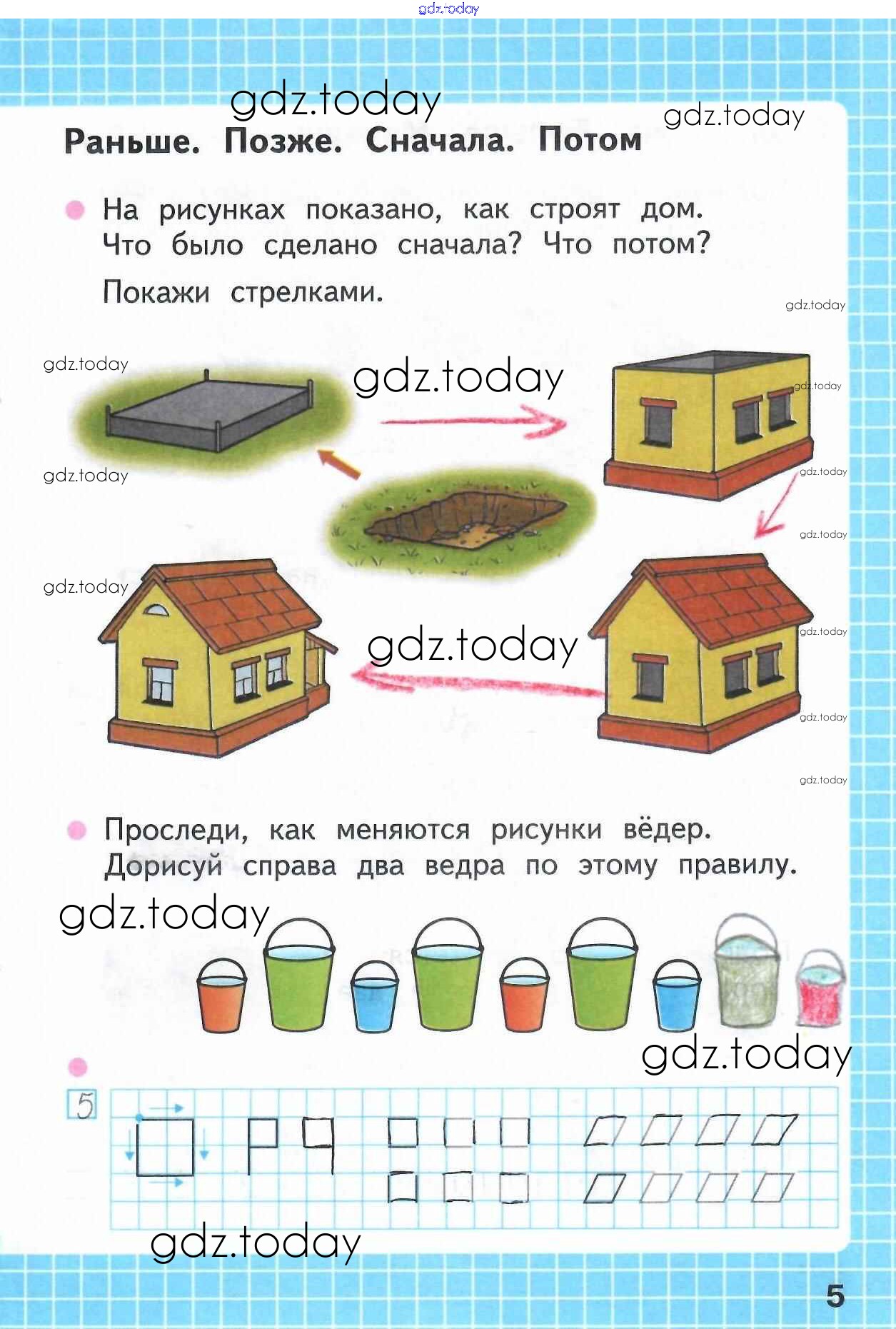 На страницах сайта gdz.today вы найдете учебный и вспомогательный материал, направленный на улучшения знаний школьной программы. ГДЗ - онлайн мир знаний Решение к части 1 (Страницы) 5 Рабочей тетради по Математике для 1 класса Моро, Волкова Просвещение Школа России 2016