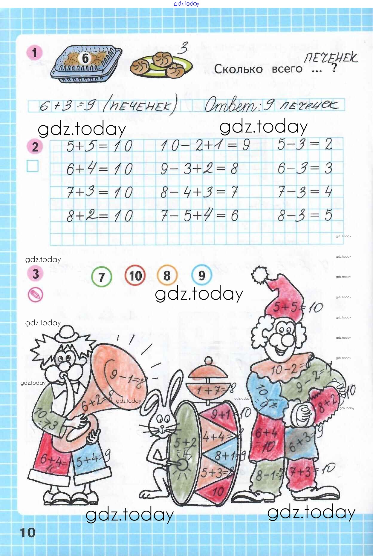 На страницах сайта gdz.today вы найдете учебный и вспомогательный материал, направленный на улучшения знаний школьной программы. ГДЗ - онлайн мир знаний Решение к части 2 (Страницы) 10 Рабочей тетради по Математике для 1 класса Моро, Волкова Просвещение Школа России 2016