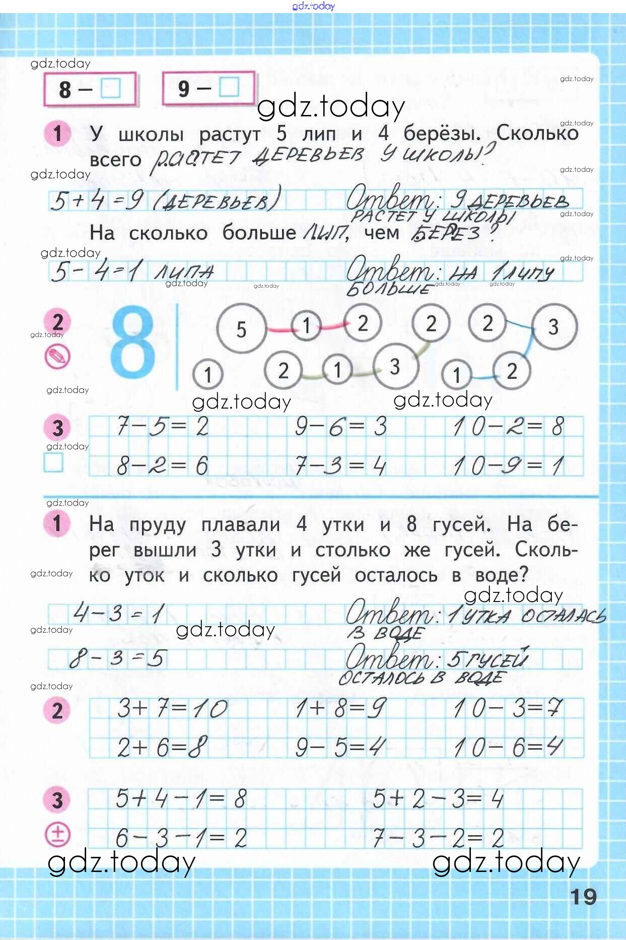 На страницах сайта gdz.today вы найдете учебный и вспомогательный материал, направленный на улучшения знаний школьной программы. ГДЗ - онлайн мир знаний Решение к части 2 (Страницы) 19 Рабочей тетради по Математике для 1 класса Моро, Волкова Просвещение Школа России 2016