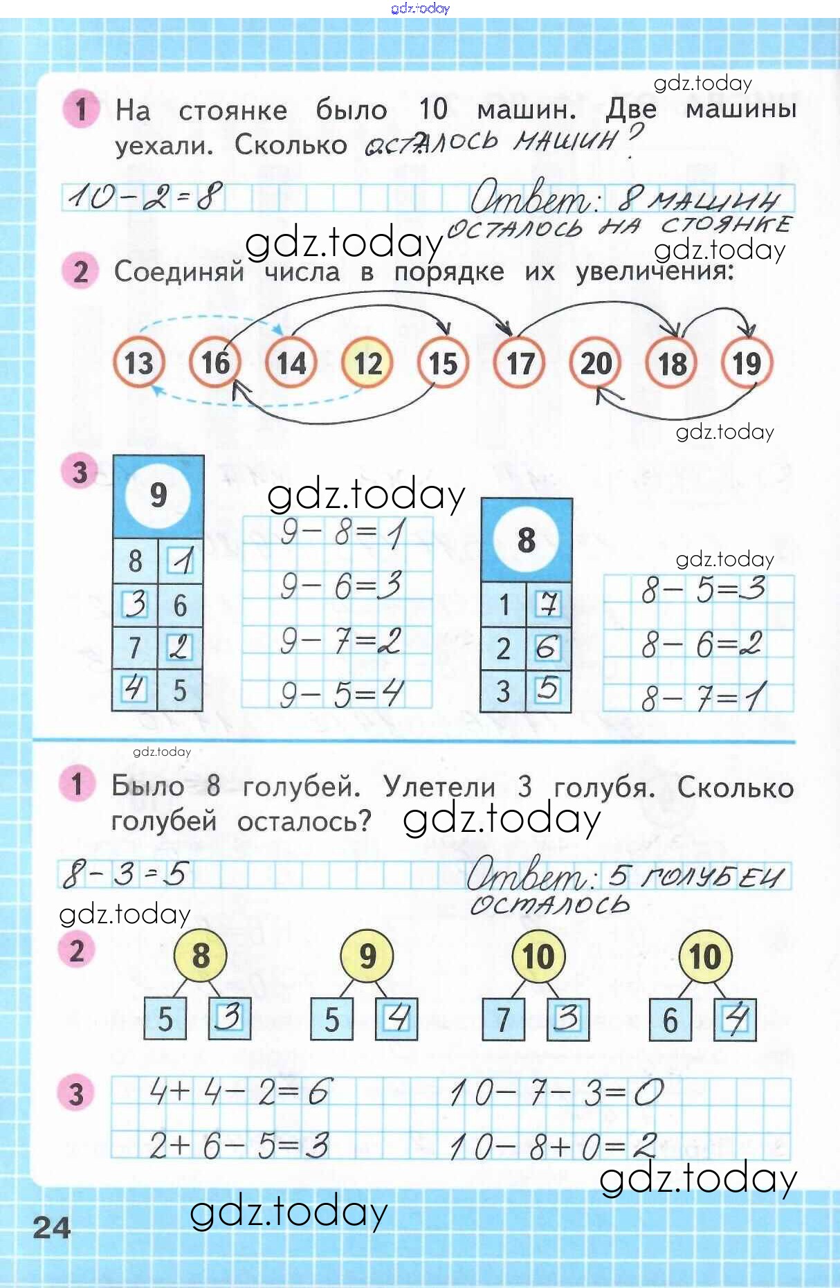 На страницах сайта gdz.today вы найдете учебный и вспомогательный материал, направленный на улучшения знаний школьной программы. ГДЗ - онлайн мир знаний Решение к части 2 (Страницы) 24 Рабочей тетради по Математике для 1 класса Моро, Волкова Просвещение Школа России 2016