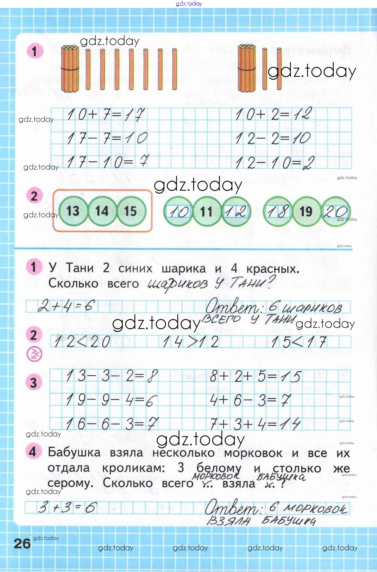 На страницах сайта gdz.today вы найдете учебный и вспомогательный материал, направленный на улучшения знаний школьной программы. ГДЗ - онлайн мир знаний Решение к части 2 (Страницы) 26 Рабочей тетради по Математике для 1 класса Моро, Волкова Просвещение Школа России 2016