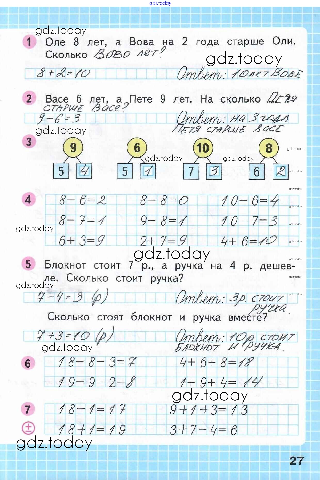 На страницах сайта gdz.today вы найдете учебный и вспомогательный материал, направленный на улучшения знаний школьной программы. ГДЗ - онлайн мир знаний Решение к части 2 (Страницы) 27 Рабочей тетради по Математике для 1 класса Моро, Волкова Просвещение Школа России 2016