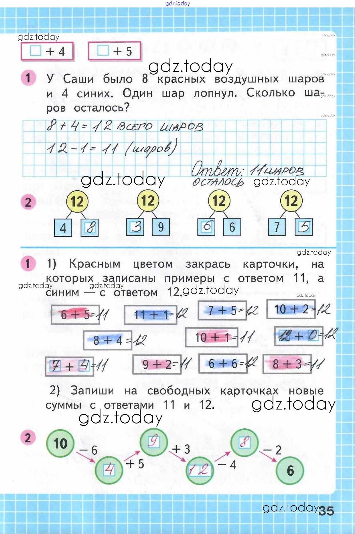 Ответы к Решение к части 2 (Страницы) 35 Рабочей тетради по Математике для 1 класса Моро, Волкова Просвещение Школа России 2016