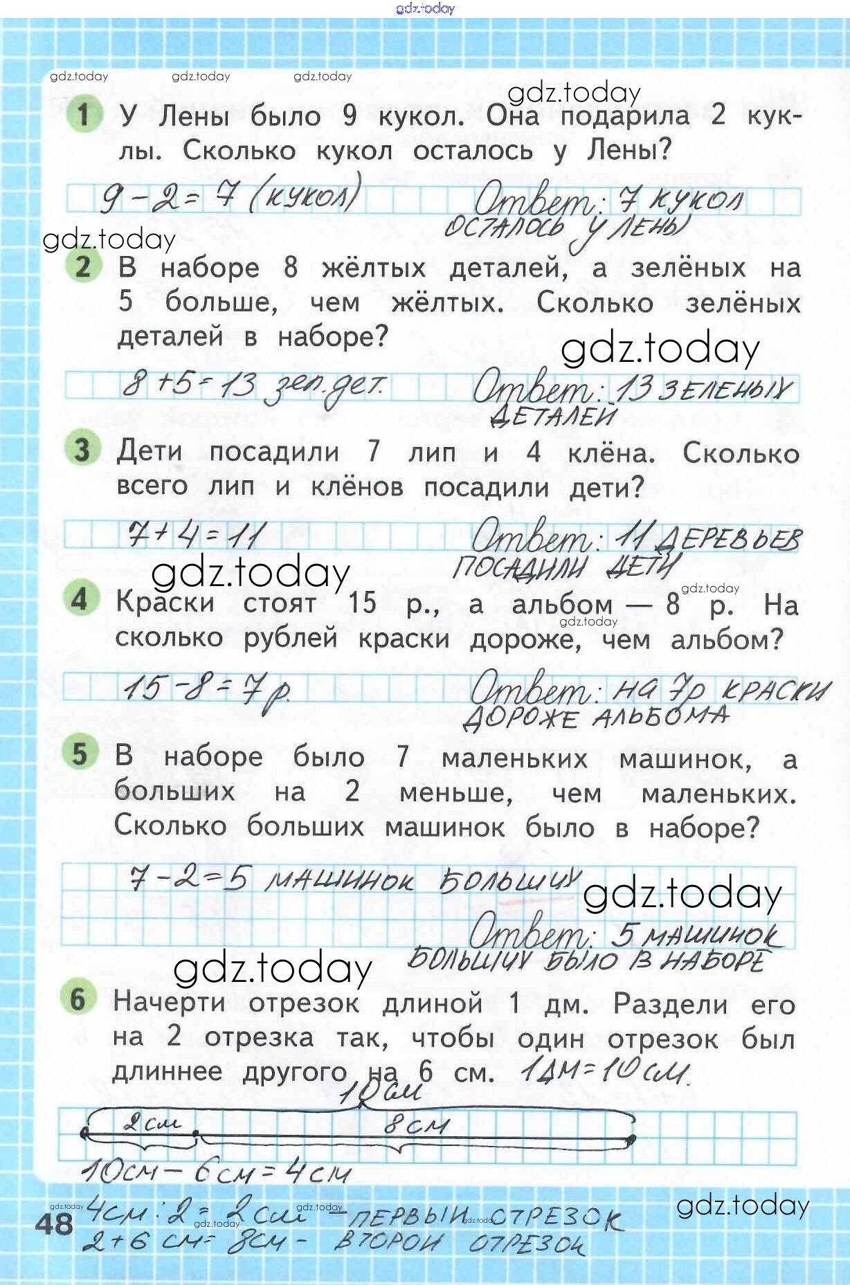 На страницах сайта gdz.today вы найдете учебный и вспомогательный материал, направленный на улучшения знаний школьной программы. ГДЗ - онлайн мир знаний Решение к части 2 (Страницы) 48 Рабочей тетради по Математике для 1 класса Моро, Волкова Просвещение Школа России 2016