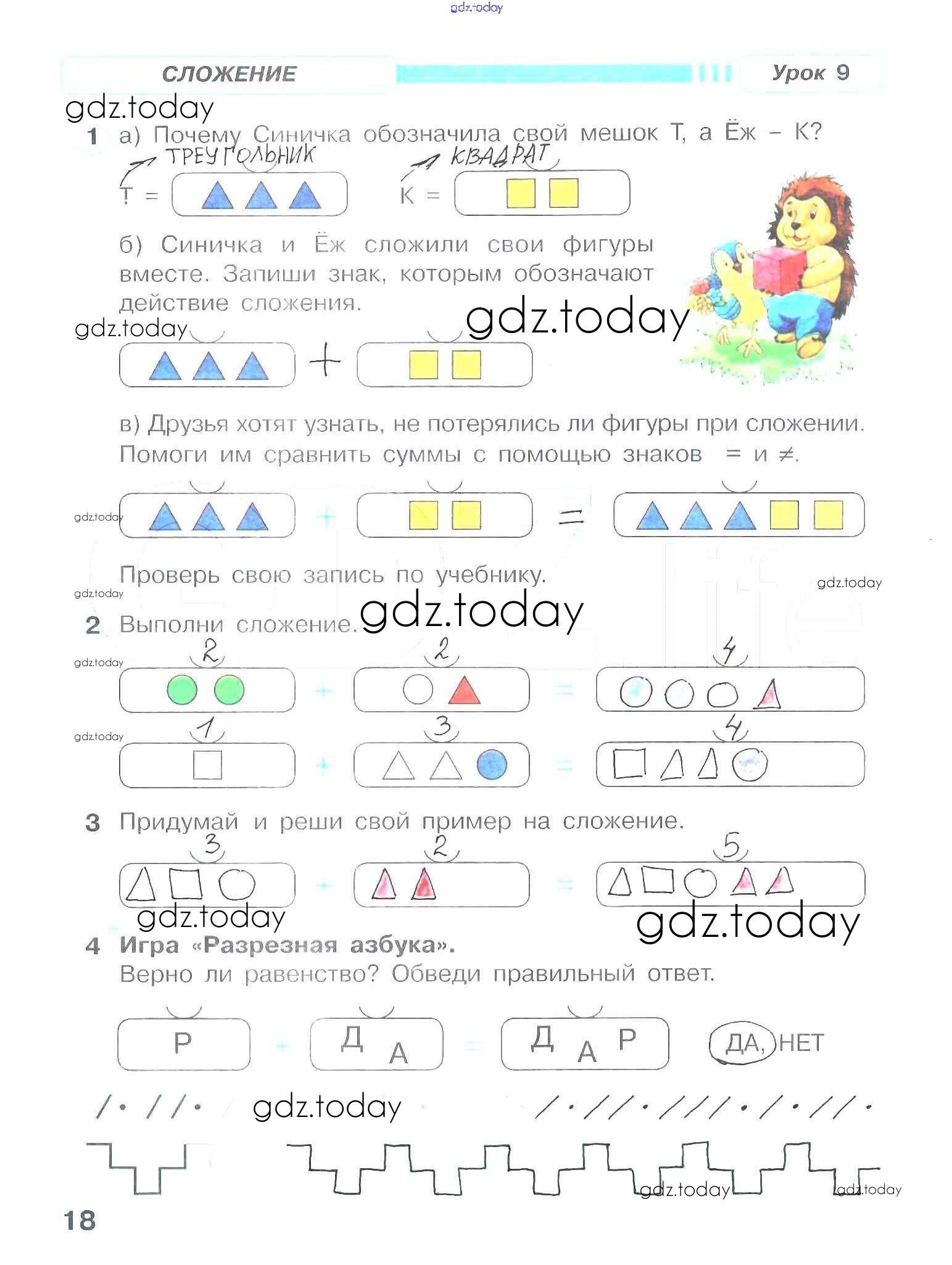 На страницах сайта gdz.today вы найдете учебный и вспомогательный материал, направленный на улучшения знаний школьной программы. ГДЗ - онлайн мир знаний Решение к части 1. Страницы 18 Рабочей тетради по Математике для 1 класса Петерсон Ювента Учусь учиться 2016