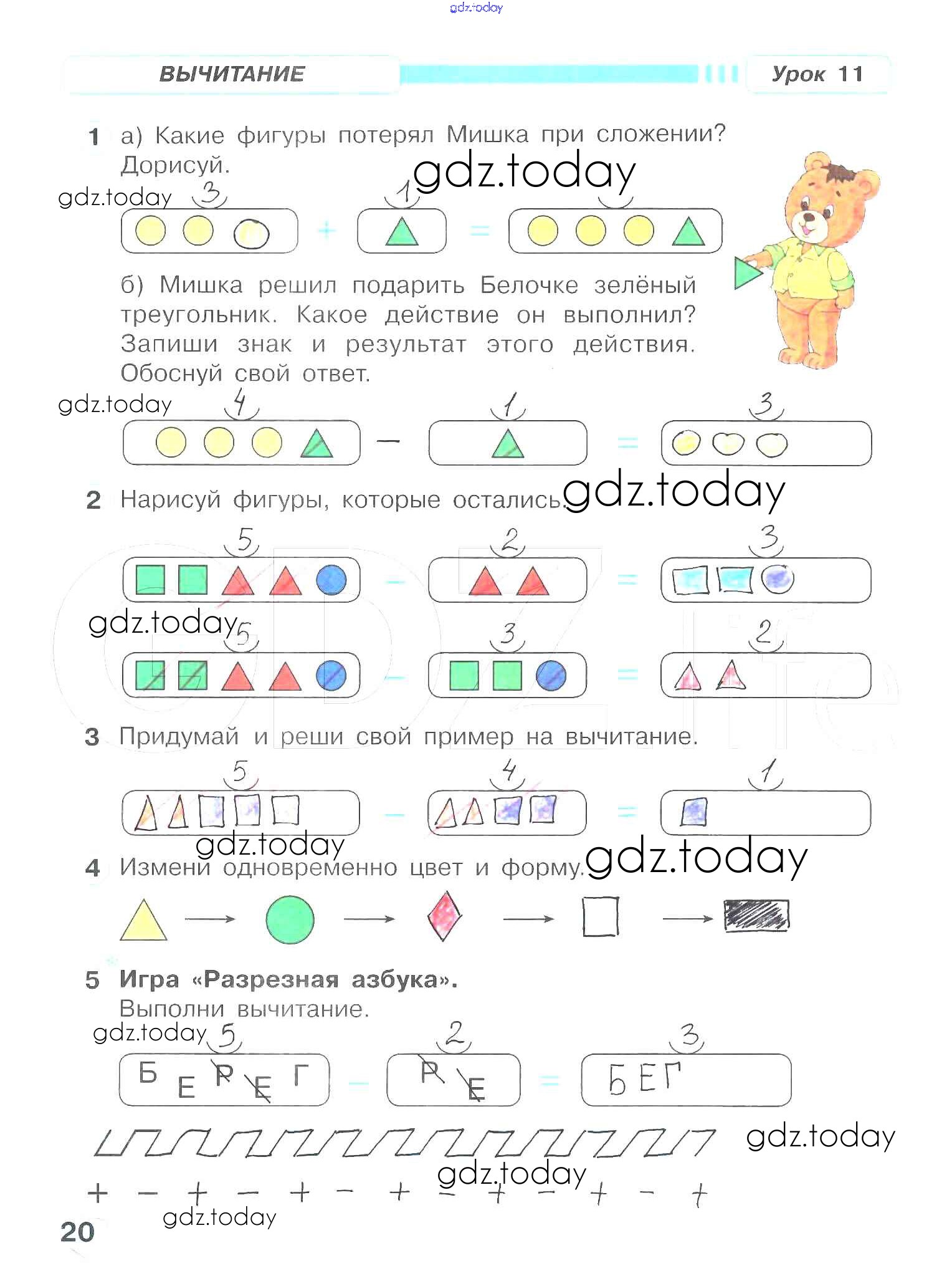 На страницах сайта gdz.today вы найдете учебный и вспомогательный материал, направленный на улучшения знаний школьной программы. ГДЗ - онлайн мир знаний Решение к части 1. Страницы 20 Рабочей тетради по Математике для 1 класса Петерсон Ювента Учусь учиться 2016