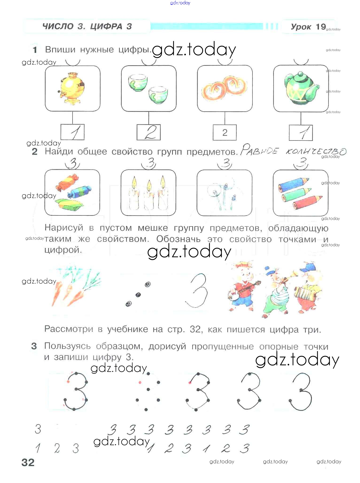 На страницах сайта gdz.today вы найдете учебный и вспомогательный материал, направленный на улучшения знаний школьной программы. ГДЗ - онлайн мир знаний Решение к части 1. Страницы 32 Рабочей тетради по Математике для 1 класса Петерсон Ювента Учусь учиться 2016