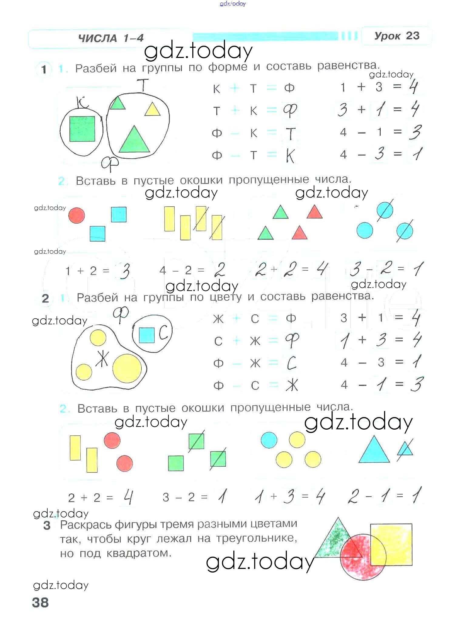 На страницах сайта gdz.today вы найдете учебный и вспомогательный материал, направленный на улучшения знаний школьной программы. ГДЗ - онлайн мир знаний Решение к части 1. Страницы 38 Рабочей тетради по Математике для 1 класса Петерсон Ювента Учусь учиться 2016
