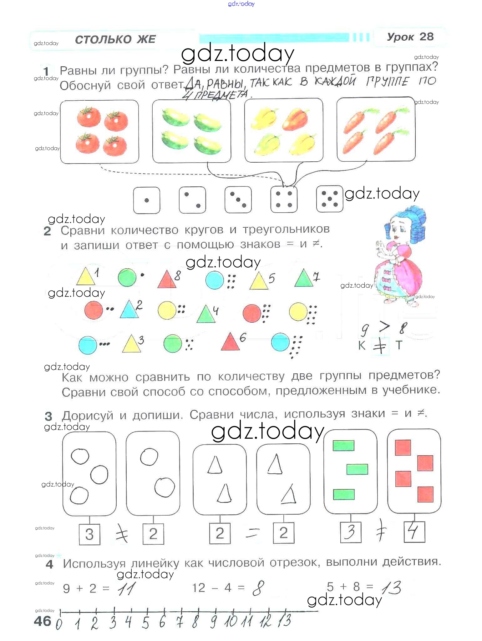 На страницах сайта gdz.today вы найдете учебный и вспомогательный материал, направленный на улучшения знаний школьной программы. ГДЗ - онлайн мир знаний Решение к части 1. Страницы 46 Рабочей тетради по Математике для 1 класса Петерсон Ювента Учусь учиться 2016