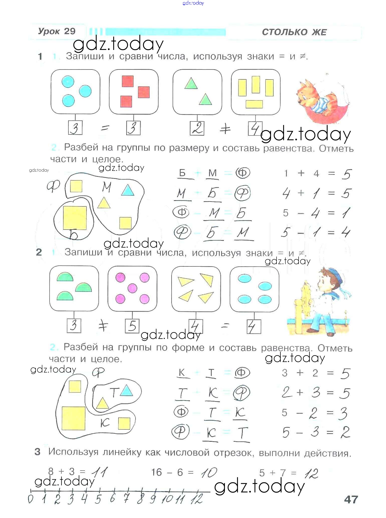 На страницах сайта gdz.today вы найдете учебный и вспомогательный материал, направленный на улучшения знаний школьной программы. ГДЗ - онлайн мир знаний Решение к части 1. Страницы 47 Рабочей тетради по Математике для 1 класса Петерсон Ювента Учусь учиться 2016