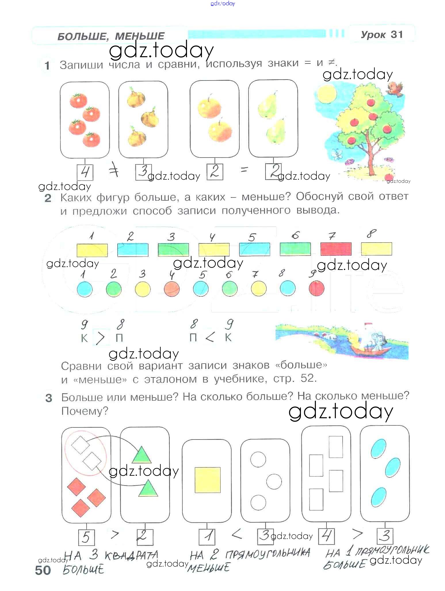 На страницах сайта gdz.today вы найдете учебный и вспомогательный материал, направленный на улучшения знаний школьной программы. ГДЗ - онлайн мир знаний Решение к части 1. Страницы 50 Рабочей тетради по Математике для 1 класса Петерсон Ювента Учусь учиться 2016