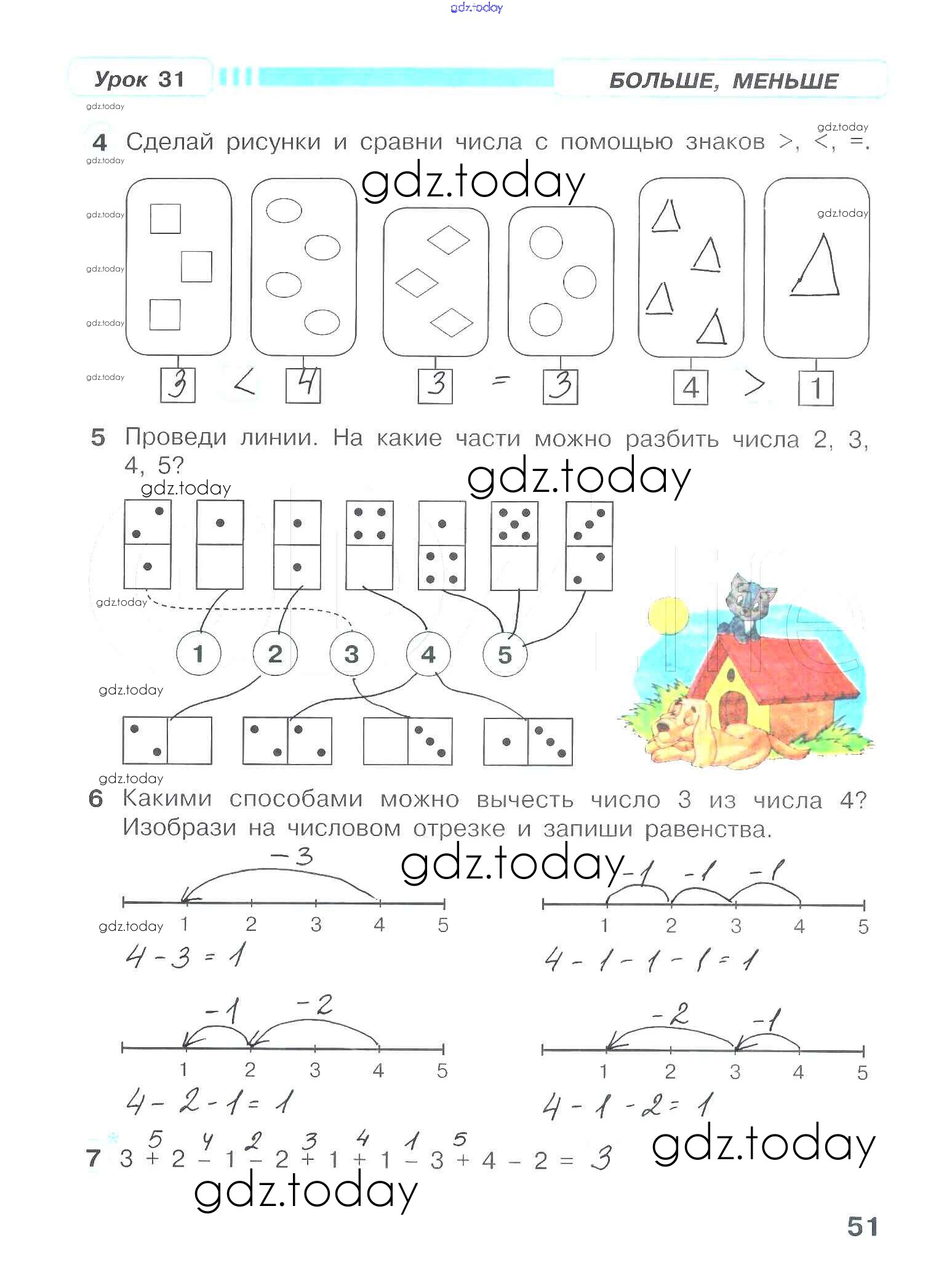 На страницах сайта gdz.today вы найдете учебный и вспомогательный материал, направленный на улучшения знаний школьной программы. ГДЗ - онлайн мир знаний Решение к части 1. Страницы 51 Рабочей тетради по Математике для 1 класса Петерсон Ювента Учусь учиться 2016