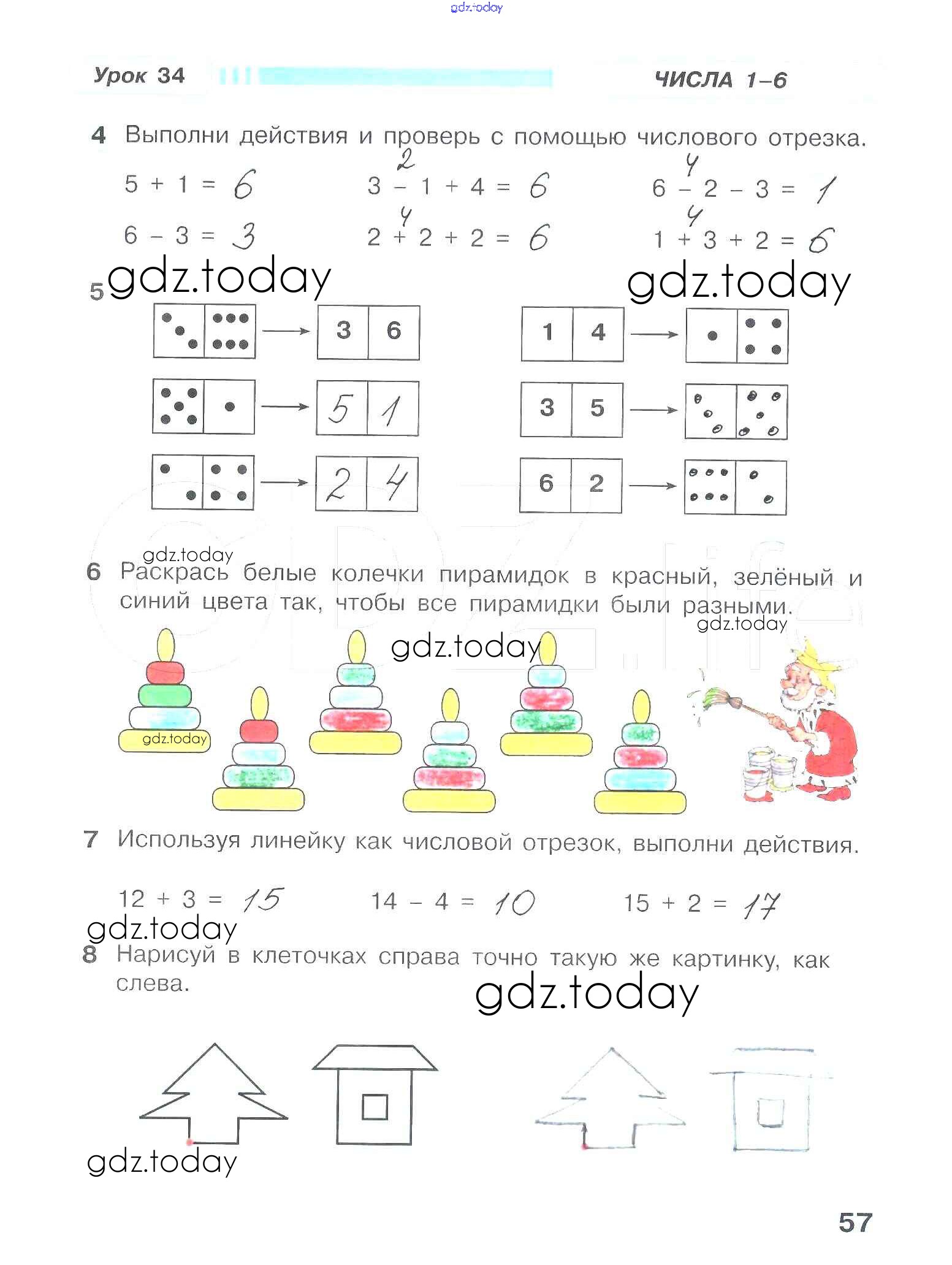 На страницах сайта gdz.today вы найдете учебный и вспомогательный материал, направленный на улучшения знаний школьной программы. ГДЗ - онлайн мир знаний Решение к части 1. Страницы 57 Рабочей тетради по Математике для 1 класса Петерсон Ювента Учусь учиться 2016