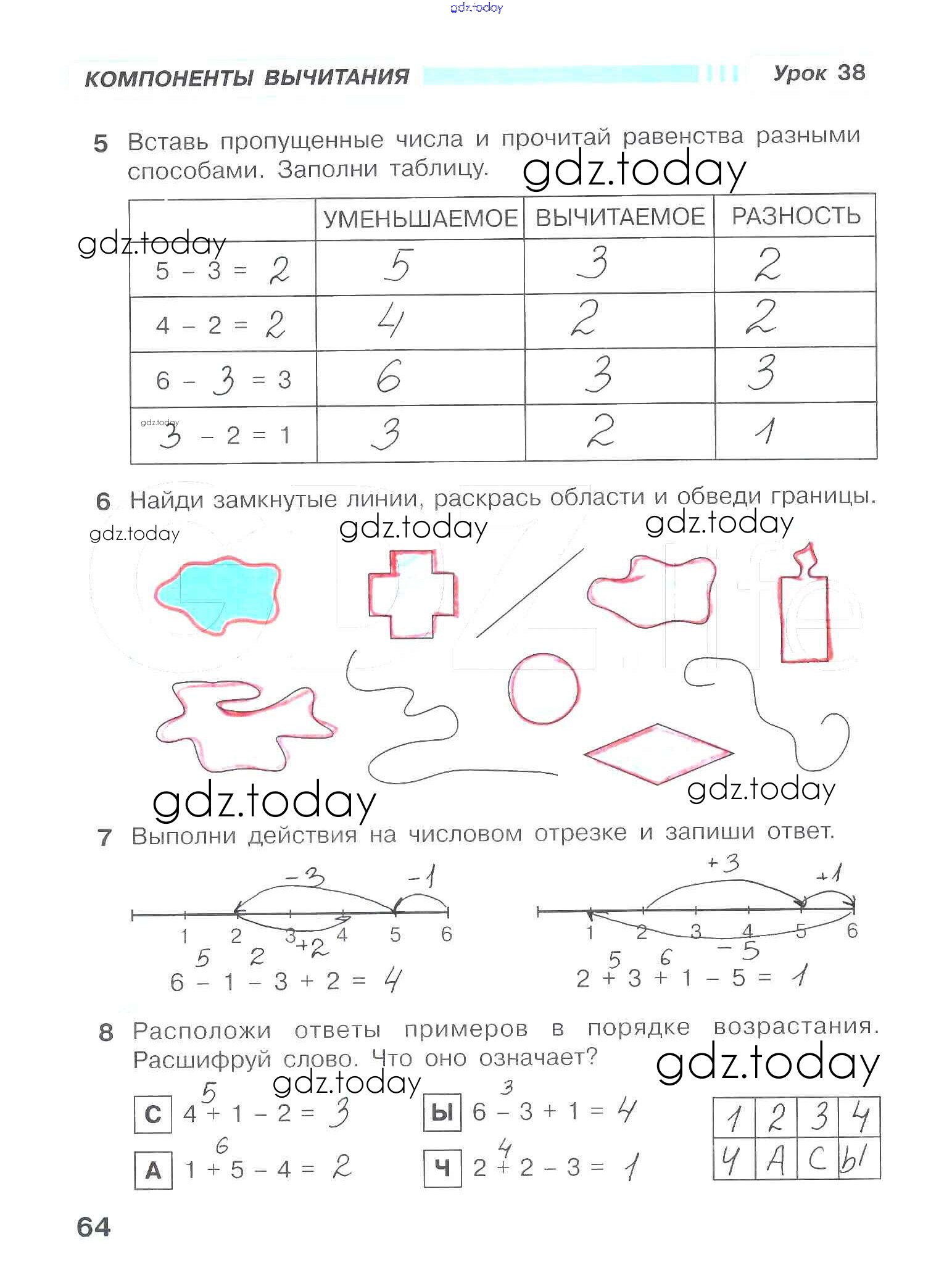 На страницах сайта gdz.today вы найдете учебный и вспомогательный материал, направленный на улучшения знаний школьной программы. ГДЗ - онлайн мир знаний Решение к части 1. Страницы 64 Рабочей тетради по Математике для 1 класса Петерсон Ювента Учусь учиться 2016