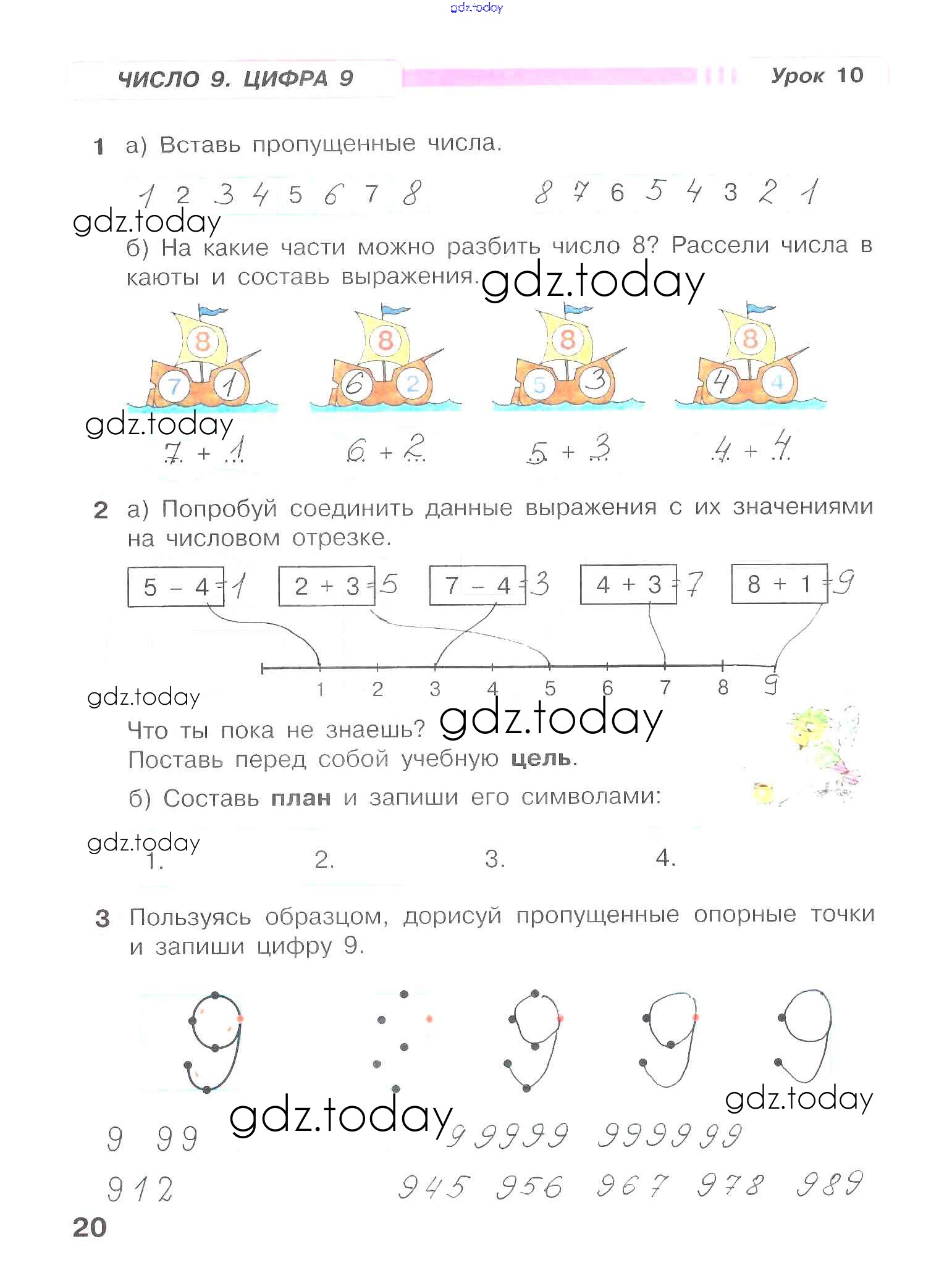 На страницах сайта gdz.today вы найдете учебный и вспомогательный материал, направленный на улучшения знаний школьной программы. ГДЗ - онлайн мир знаний Решение к части 2. Страницы 20 Рабочей тетради по Математике для 1 класса Петерсон Ювента Учусь учиться 2016