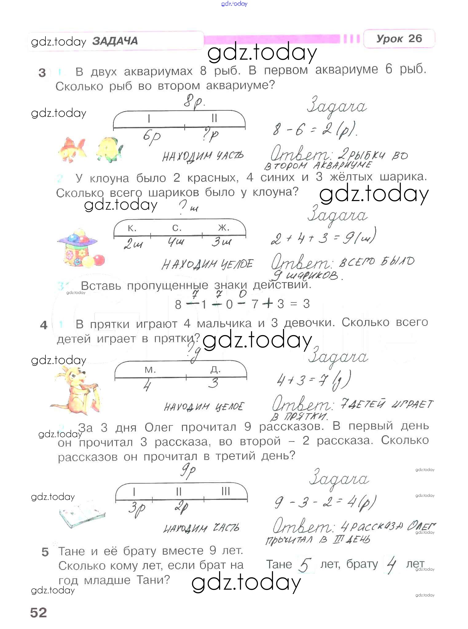 На страницах сайта gdz.today вы найдете учебный и вспомогательный материал, направленный на улучшения знаний школьной программы. ГДЗ - онлайн мир знаний Решение к части 2. Страницы 52 Рабочей тетради по Математике для 1 класса Петерсон Ювента Учусь учиться 2016