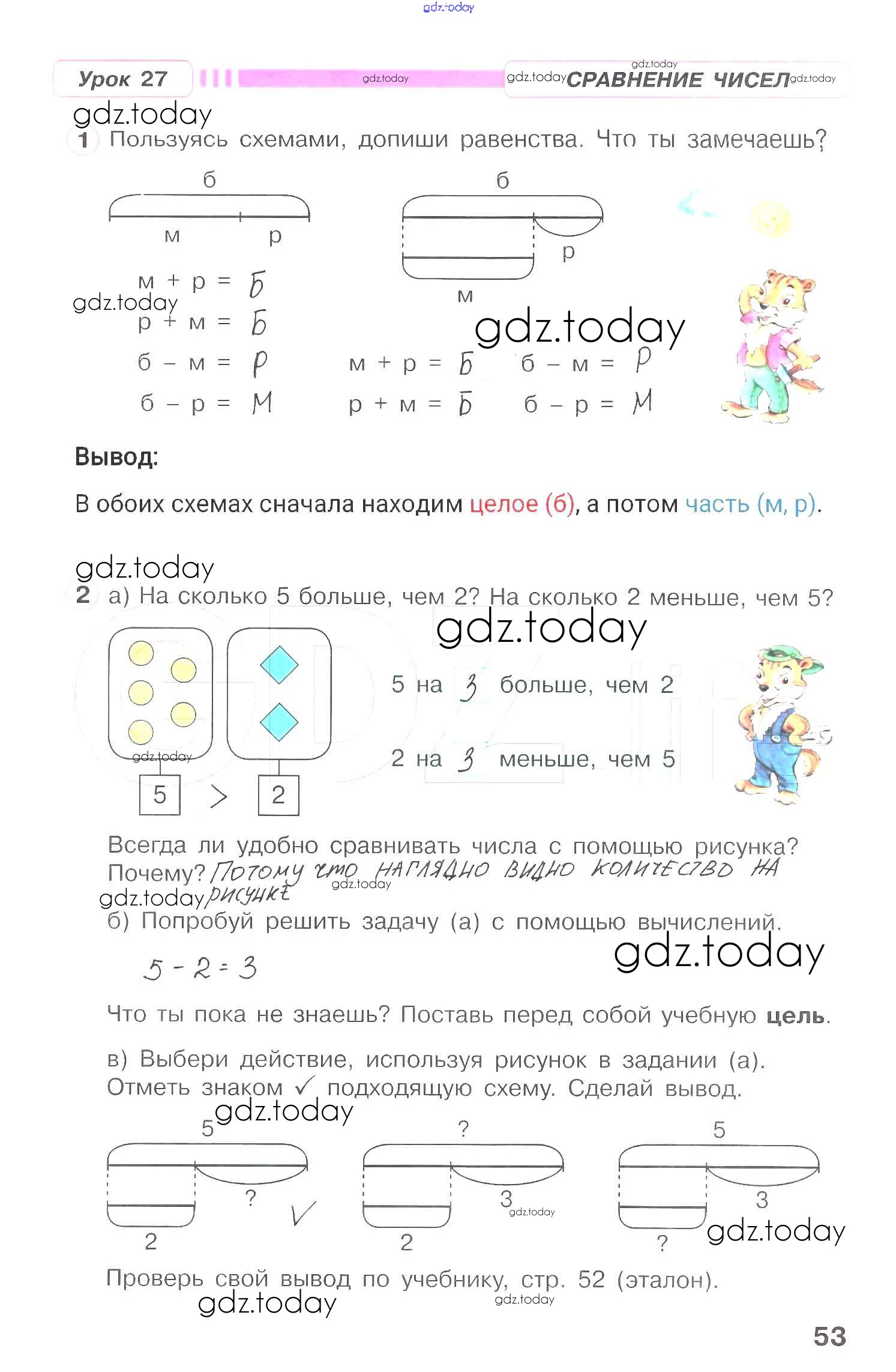 На страницах сайта gdz.today вы найдете учебный и вспомогательный материал, направленный на улучшения знаний школьной программы. ГДЗ - онлайн мир знаний Решение к части 2. Страницы 53 Рабочей тетради по Математике для 1 класса Петерсон Ювента Учусь учиться 2016