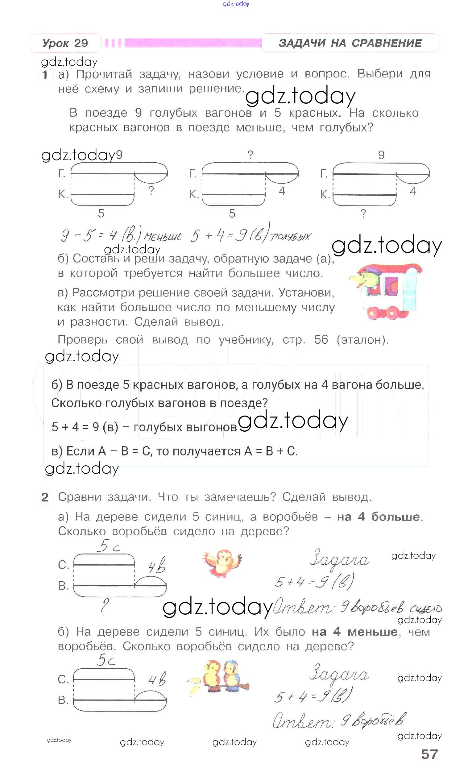 На страницах сайта gdz.today вы найдете учебный и вспомогательный материал, направленный на улучшения знаний школьной программы. ГДЗ - онлайн мир знаний Решение к части 2. Страницы 57 Рабочей тетради по Математике для 1 класса Петерсон Ювента Учусь учиться 2016