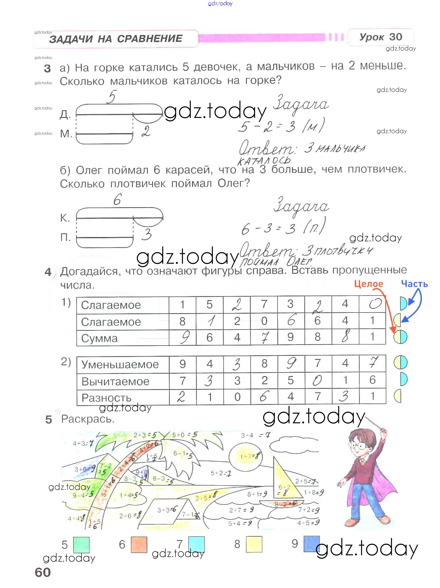 На страницах сайта gdz.today вы найдете учебный и вспомогательный материал, направленный на улучшения знаний школьной программы. ГДЗ - онлайн мир знаний Решение к части 2. Страницы 60 Рабочей тетради по Математике для 1 класса Петерсон Ювента Учусь учиться 2016