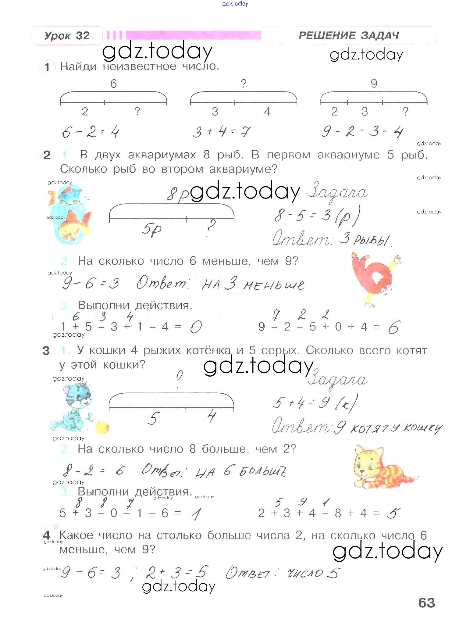 На страницах сайта gdz.today вы найдете учебный и вспомогательный материал, направленный на улучшения знаний школьной программы. ГДЗ - онлайн мир знаний Решение к части 2. Страницы 63 Рабочей тетради по Математике для 1 класса Петерсон Ювента Учусь учиться 2016