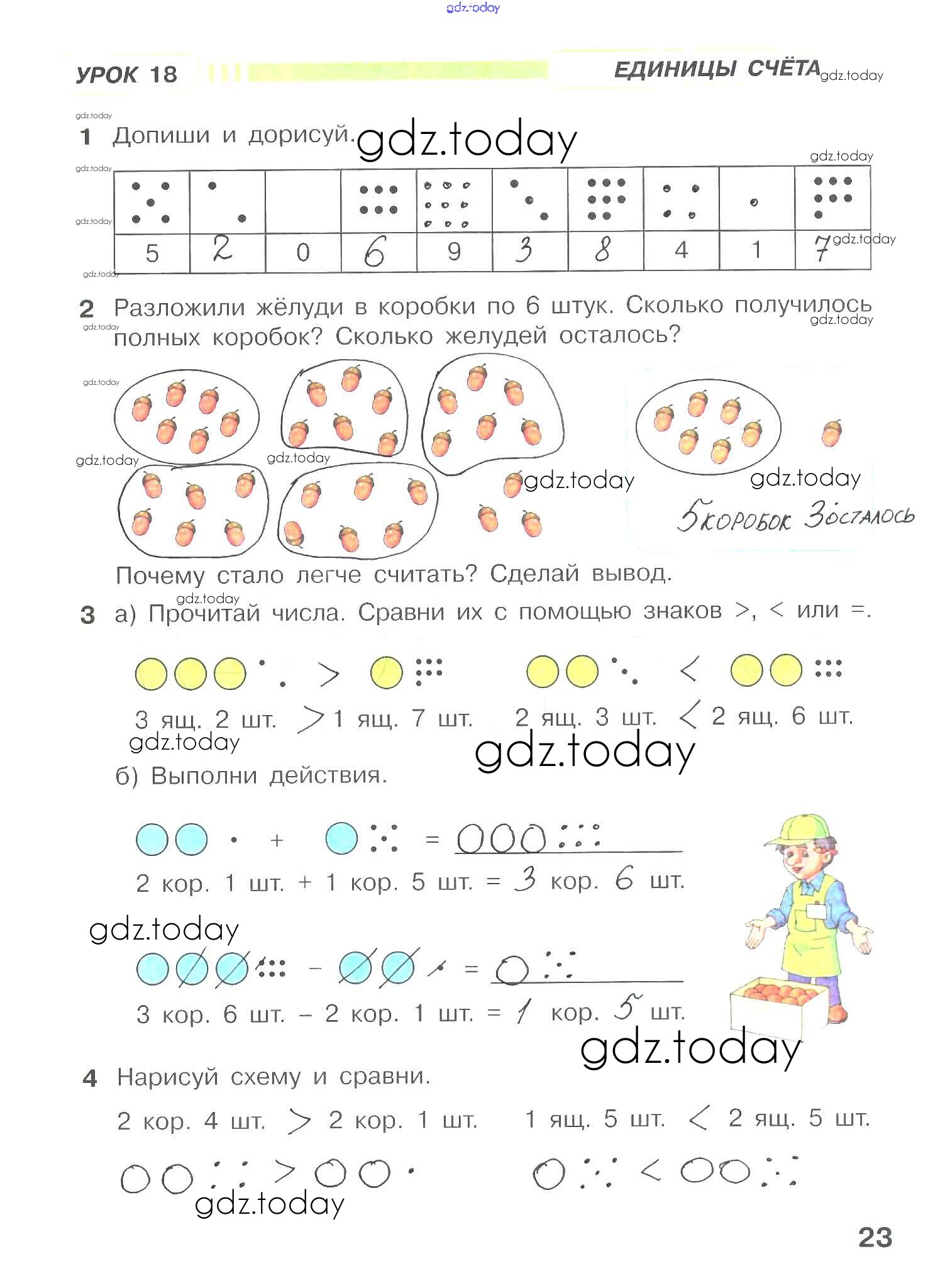 На страницах сайта gdz.today вы найдете учебный и вспомогательный материал, направленный на улучшения знаний школьной программы. ГДЗ - онлайн мир знаний Решение к части 3. Страницы 23 Рабочей тетради по Математике для 1 класса Петерсон Ювента Учусь учиться 2016