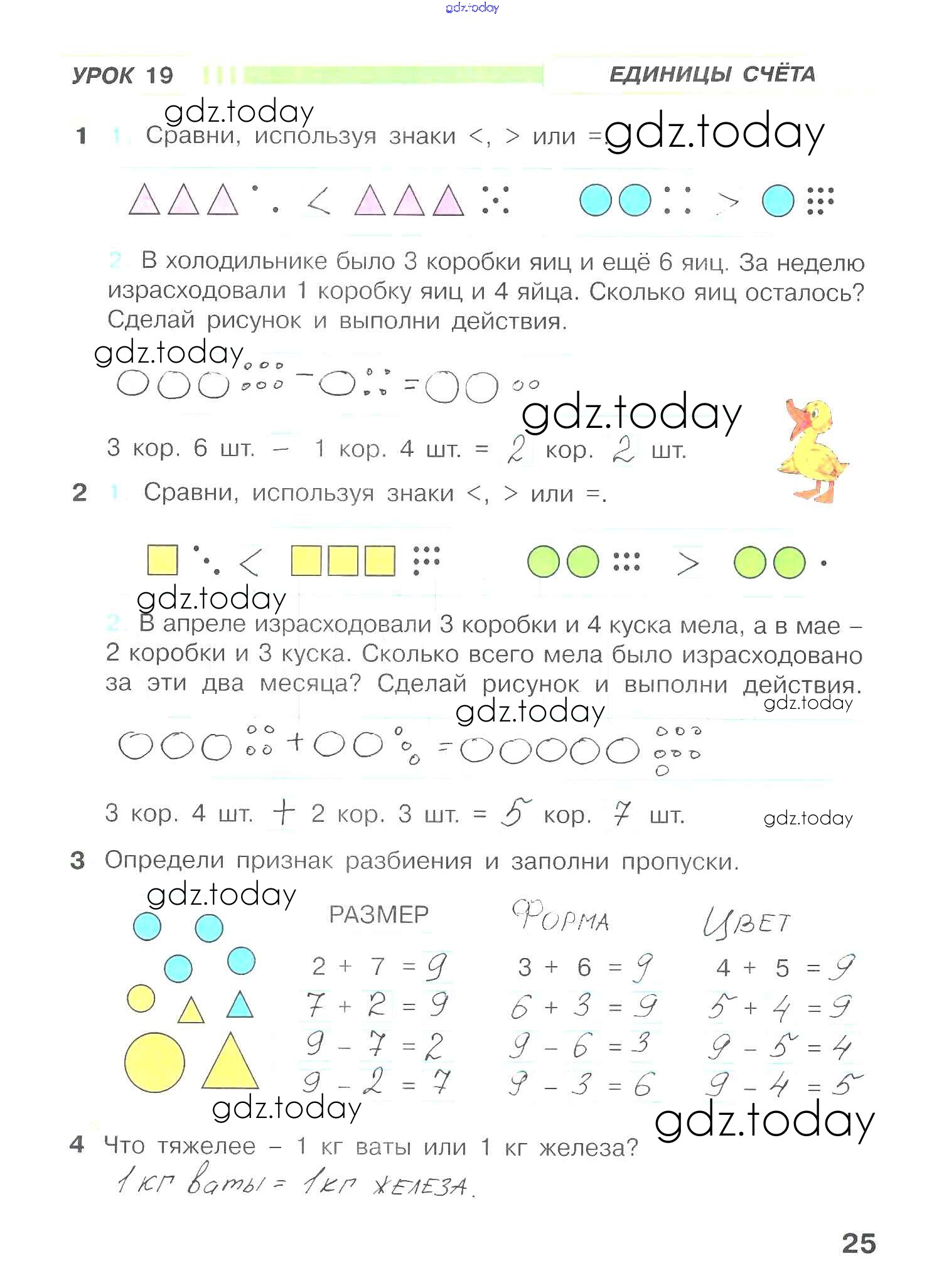 На страницах сайта gdz.today вы найдете учебный и вспомогательный материал, направленный на улучшения знаний школьной программы. ГДЗ - онлайн мир знаний Решение к части 3. Страницы 25 Рабочей тетради по Математике для 1 класса Петерсон Ювента Учусь учиться 2016
