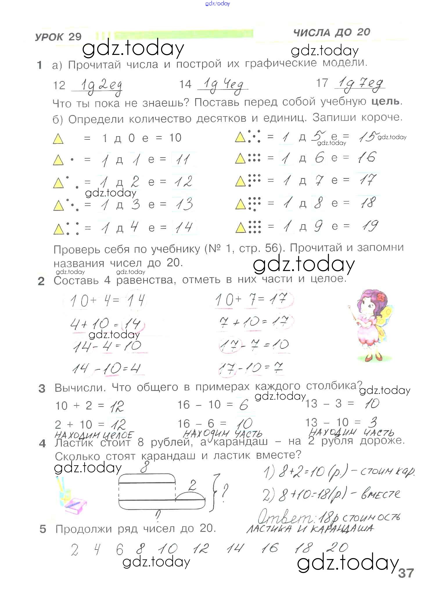На страницах сайта gdz.today вы найдете учебный и вспомогательный материал, направленный на улучшения знаний школьной программы. ГДЗ - онлайн мир знаний Решение к части 3. Страницы 37 Рабочей тетради по Математике для 1 класса Петерсон Ювента Учусь учиться 2016