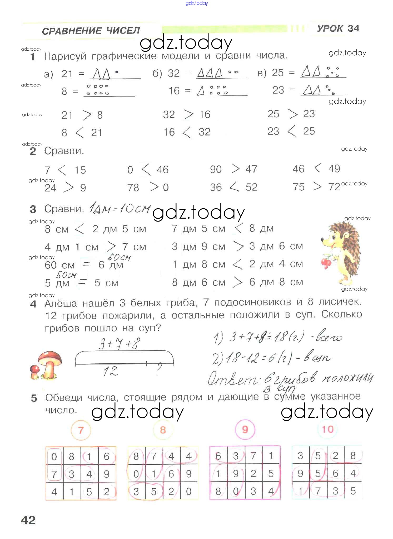 На страницах сайта gdz.today вы найдете учебный и вспомогательный материал, направленный на улучшения знаний школьной программы. ГДЗ - онлайн мир знаний Решение к части 3. Страницы 42 Рабочей тетради по Математике для 1 класса Петерсон Ювента Учусь учиться 2016